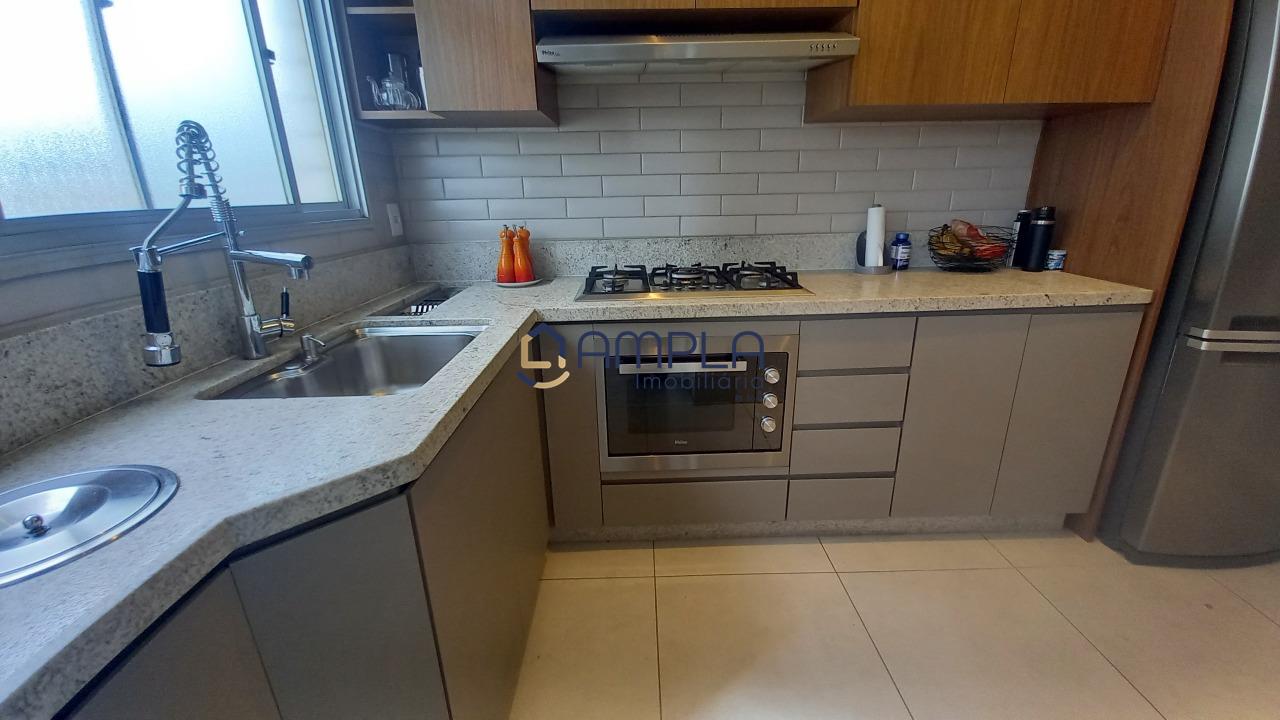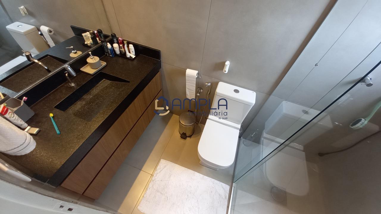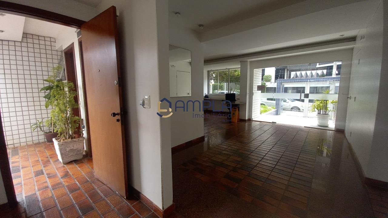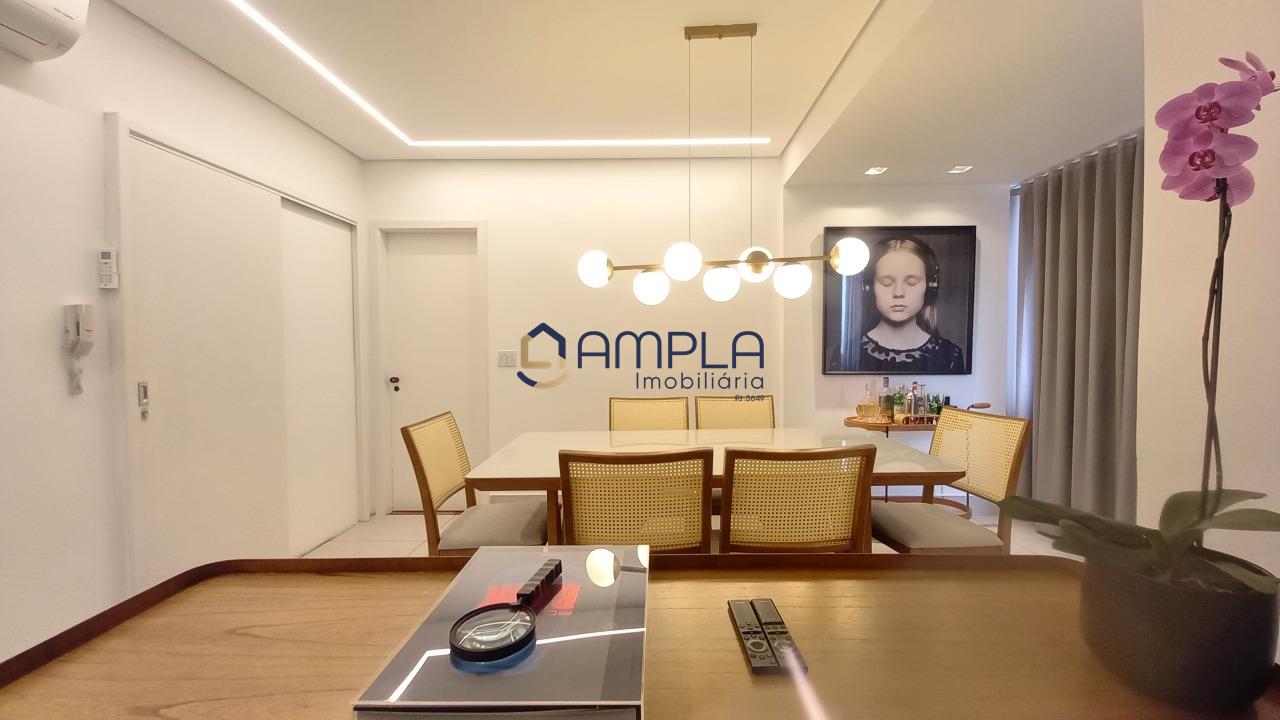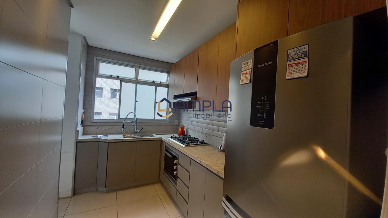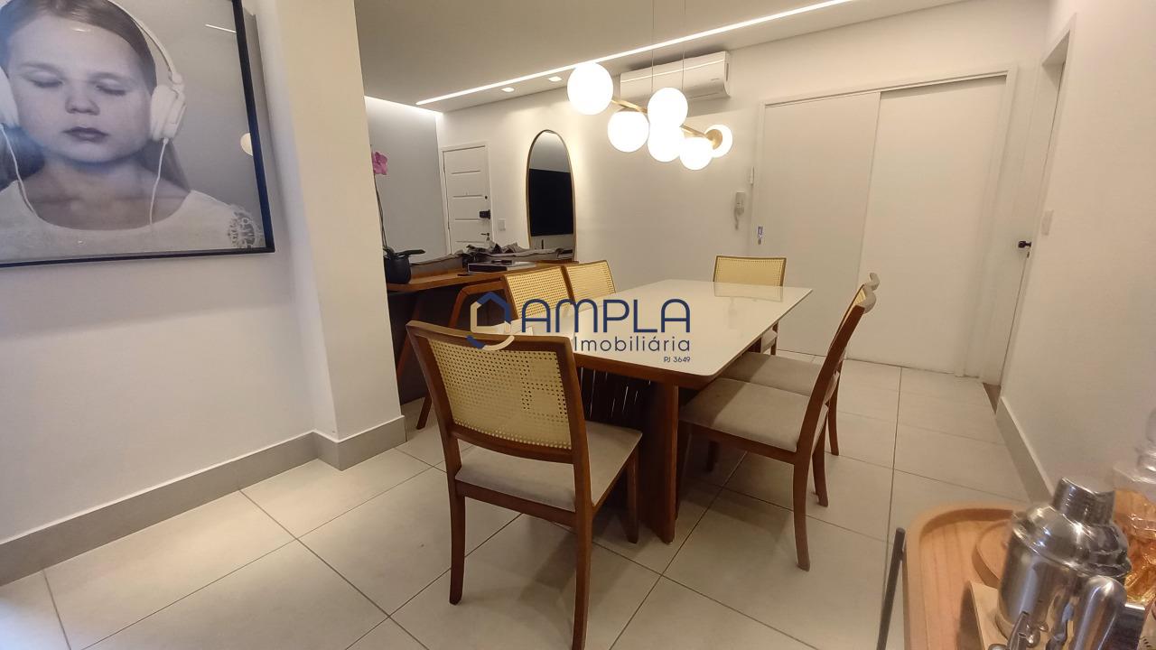 1 Sala para 02 ambientes, com teto com rebaixamento em gesso e iluminação embutido, ar condicionado, janela em blindex com cortinas, área de circulação com armário embutido, 03 quartos com armários embutidos, todos os tetos com ventilador de teto, as janelas dos quartos com cortinas, os pisos dos quartos em tábua corrida, Banheiro social e suite finamente decorados com armário, espelho e box em blindex e piso em porcelanato, cozinha com armários planejados e bancadas em granito, fogão cook-top, forno elétrico e e lava louça, piso em porcelanato, área de serviõ com bancadas em granito e armários planejados, DCE, 02 vagas de garagem em linha cobertas, box de despejo, salão de festas e 02 elevadores.