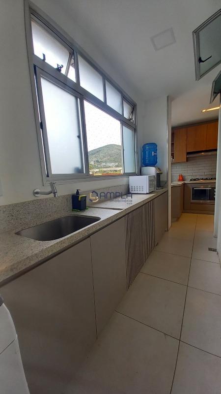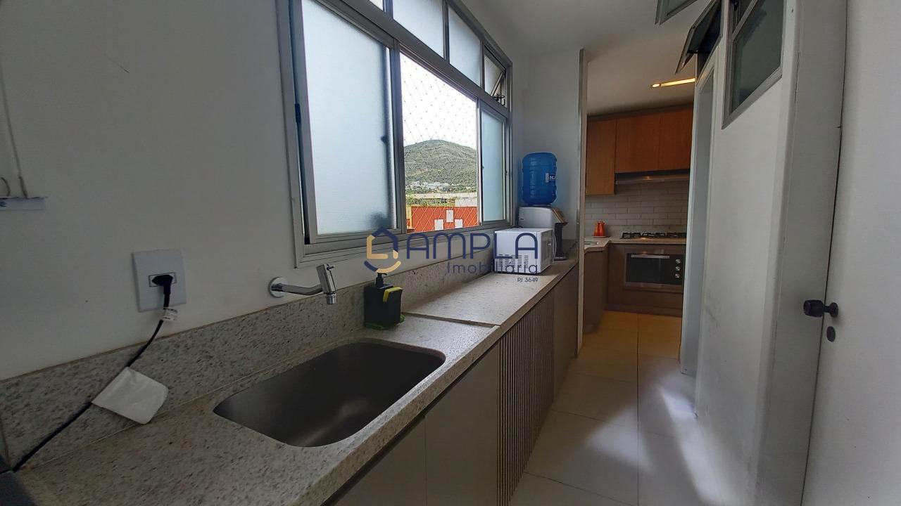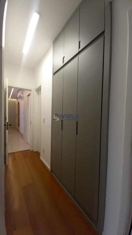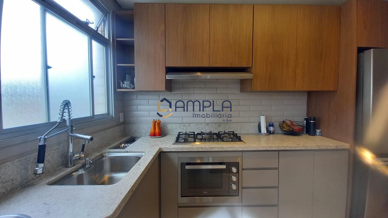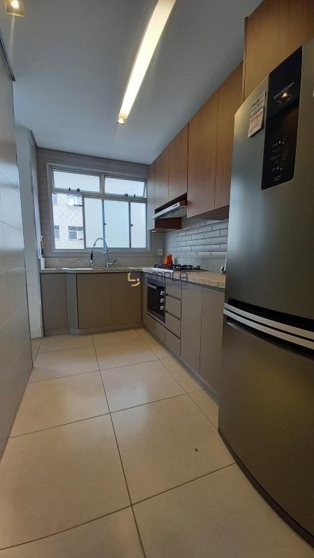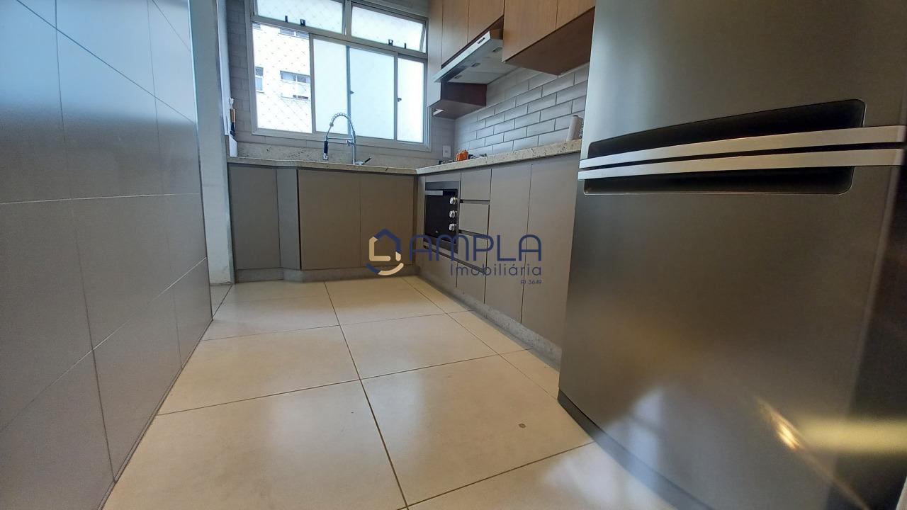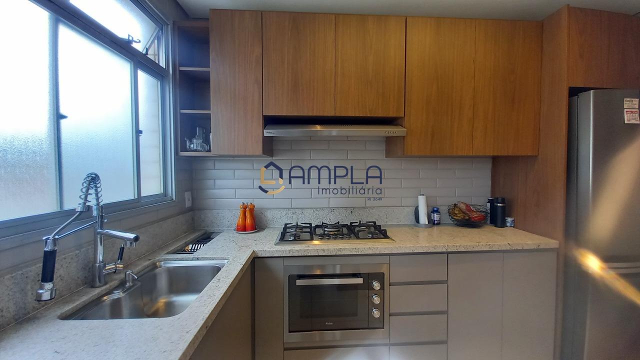 1 Sala para 02 ambientes, com teto com rebaixamento em gesso e iluminação embutido, ar condicionado, janela em blindex com cortinas, área de circulação com armário embutido, 03 quartos com armários embutidos, todos os tetos com ventilador de teto, as janelas dos quartos com cortinas, os pisos dos quartos em tábua corrida, Banheiro social e suite finamente decorados com armário, espelho e box em blindex e piso em porcelanato, cozinha com armários planejados e bancadas em granito, fogão cook-top, forno elétrico e e lava louça, piso em porcelanato, área de serviõ com bancadas em granito e armários planejados, DCE, 02 vagas de garagem em linha cobertas, box de despejo, salão de festas e 02 elevadores.